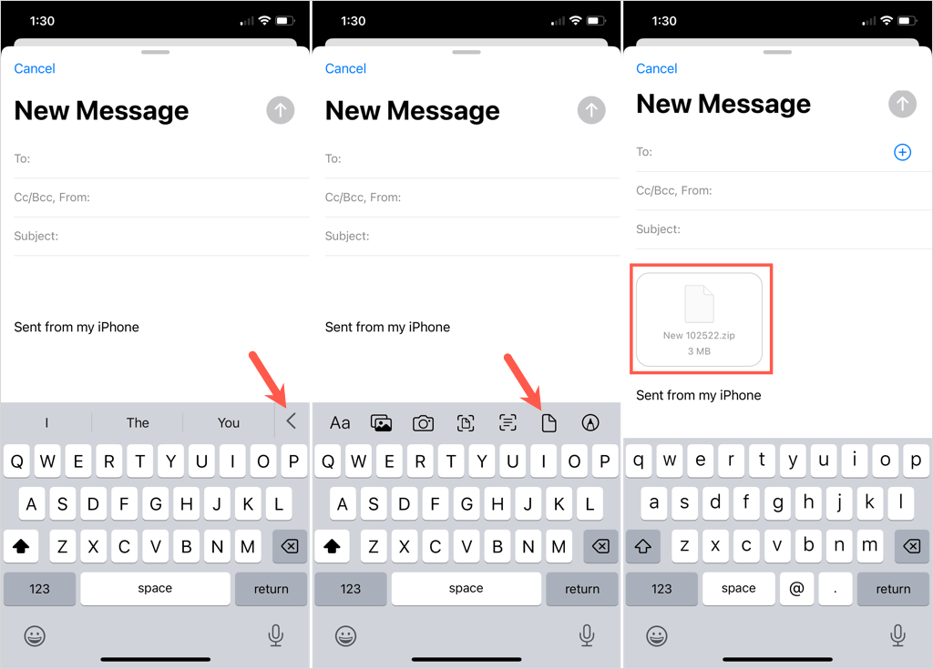 Toisin kuin Mac -sovelluksen MAC -sovellus, sinun on pakattava kansiosi ennen kuin liität sen sähköpostiisi iPhonessa ja iPadissa. Kuten Androidissa, jos valitset kansion liitteenä, se yksinkertaisesti aukeaa kohteita.