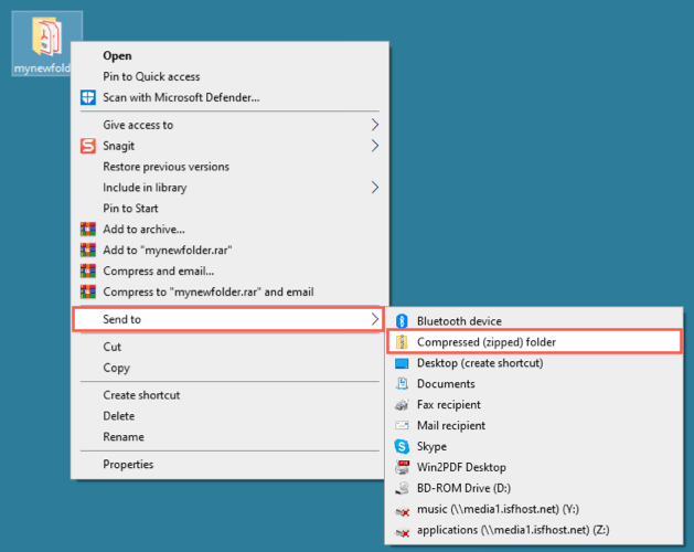 - Valitse pikavalikostaLähettääja sittenPakattu (vetoketjullinen) kansio. Tämä sanamuoto voi vaihdella käyttämäsi Windows -version mukaan.