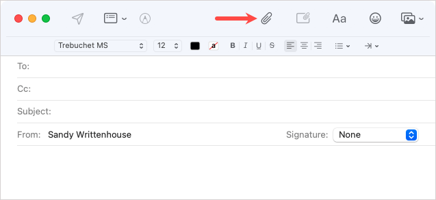 - NapauttaaKlemmarikuvake yläosassa ja valitseLiitetä tiedosto.