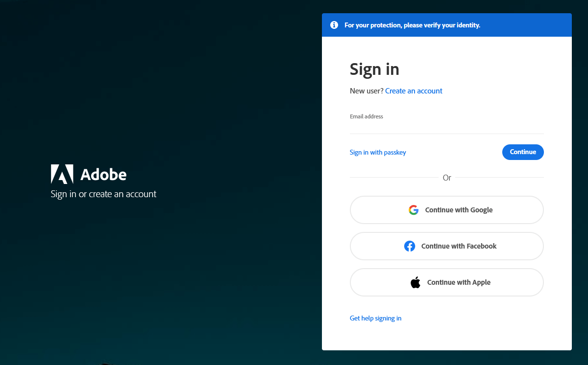 - Jos et ole kirjautunut sisään, Adobe pyytää sinua antamaan kirjautumistietosi ennen kuin ohjaa sinut suunnitelmasivulle.