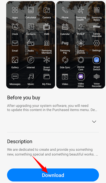 - Kun olet valinnut kuvakepaketin, valitseLadataladata pakkaus puhelimeesi.