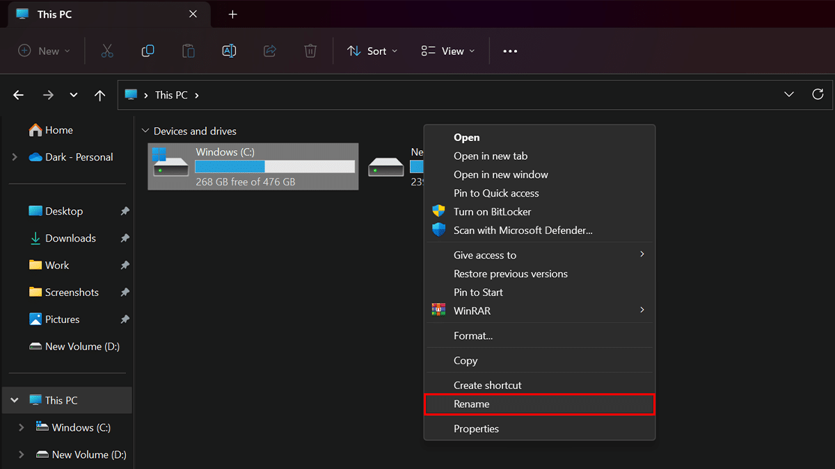 Tässä on ohjeet aseman nimen muuttamiseen Windows 11:ssä:
