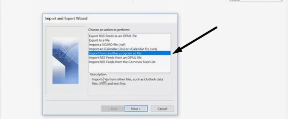 3.ValitaTuo toisesta ohjelmasta tai tiedostostavaihtoehtoTuo ja vienti Wizardkehote.