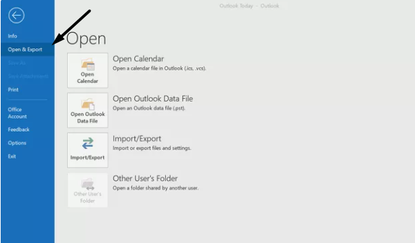 2.ValitaAvoin ja vientivasemmalta navigointiruudusta ja napsauta sittenTuonti/vientiotsikko.