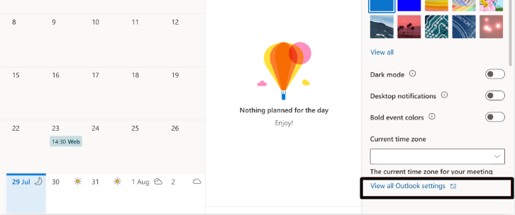 2.NapsautaKatso kaikki Outlook -asetuksetlinkittääAsetuksetPaneeli päästäksesi asetuksiin.