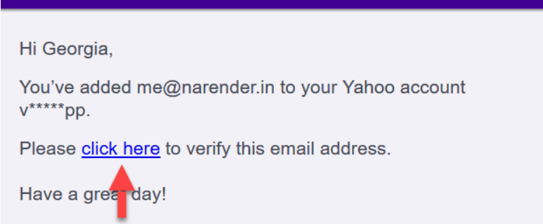 5.Kun olet valmis, avaa vanha sähköpostitilisi ja napsautanapsauta tätäTeksti Yahoosta vastaanotetussa sähköpostiviestissä.