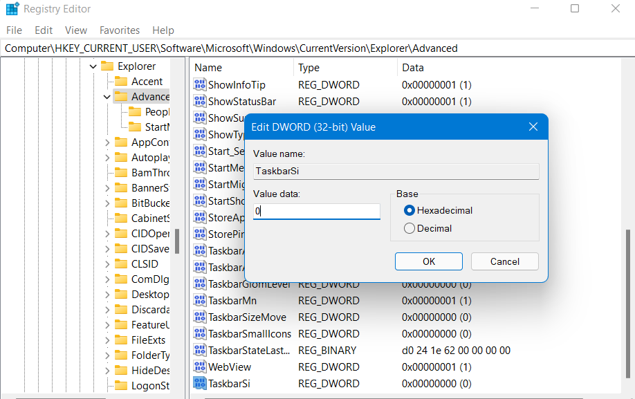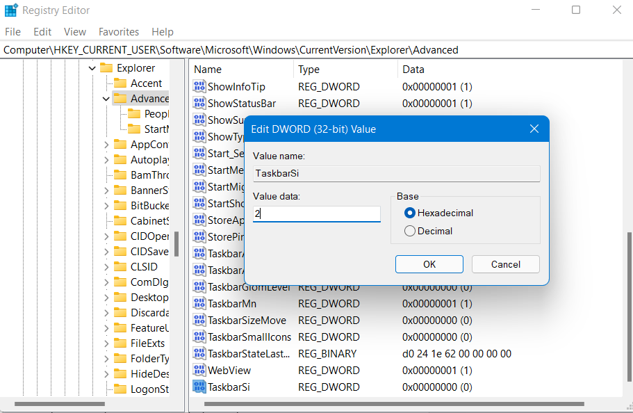 HKEY_CURRENT_USERSoftwareMicrosoftWindowsCurrentVersionExplorerAdvanced