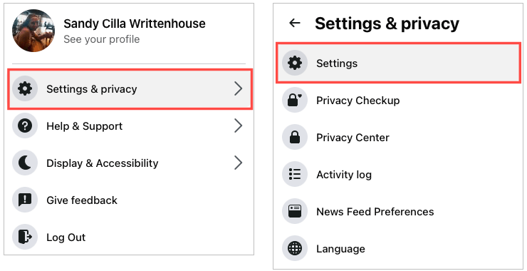 - Avaa Facebook -sovellus ja valitseValikkovälilehti.