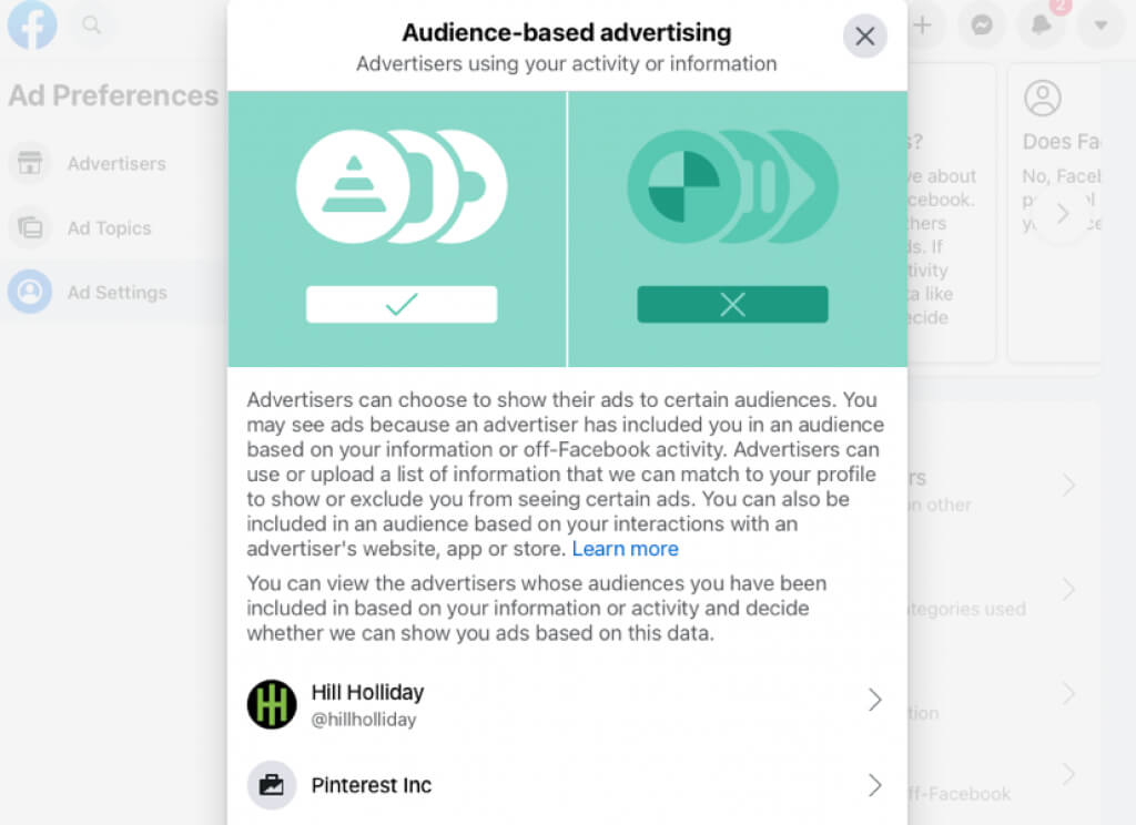 Voit valita kiinnostavat mainosaiheet poistamalla ne, jotka eivät tee. Voit myös sallia tiettyjen mainostajien mainoksia ja piilottaa muiden. Siihen saakka ja ellei yritys ole mainosvapaa malli, miksi et ainakin hallita sellaisia mainoksia, jotka esittävät postituksesi, mieltymyksesi tai seuraavat Facebookissa.