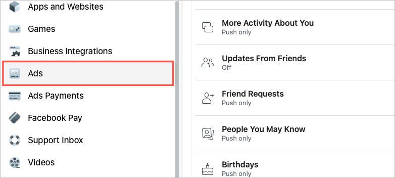 - ValitaMainoksetvasemmassa navigoinnissa.