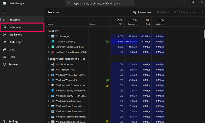 Muuten kuin yllä olevien työkalujen ja sovellusten käyttäminen Windows 11 -tietokoneen tai kannettavan tietokoneen tietokonekerrojen löytämiseen, voit käyttää Task Manager -sovellusta löytääksesi joitain laitteen teknisiä tietoja.