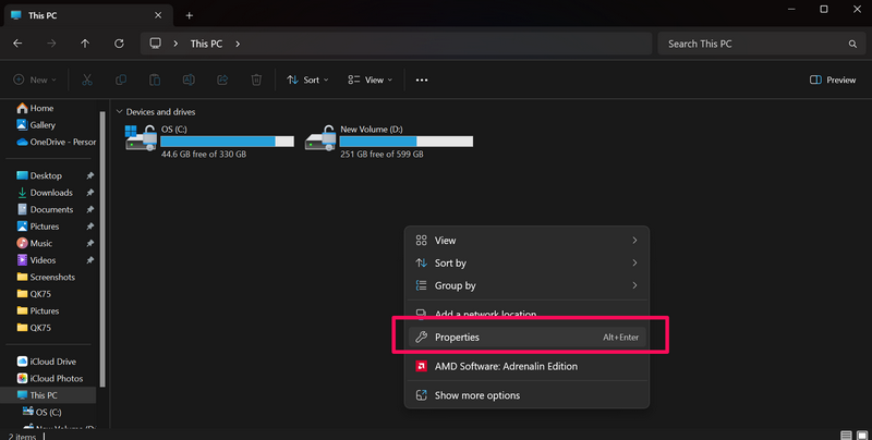 3.Vaihtoehtoisesti voit avataNoinWindows 11 -tietokoneen tai kannettavan tietokoneen sivun kauttaOminaisuudetvaihtoehtoNapsauta hiiren kakkospainikkeella kontekstivalikkoapäälleTämä tietokonesivuuttaaTiedostotutkija. Tai voit myös painaa Alt + Enter -sovellusta tällä PC -sivulla avataksesiSivustaasetuksissa.
