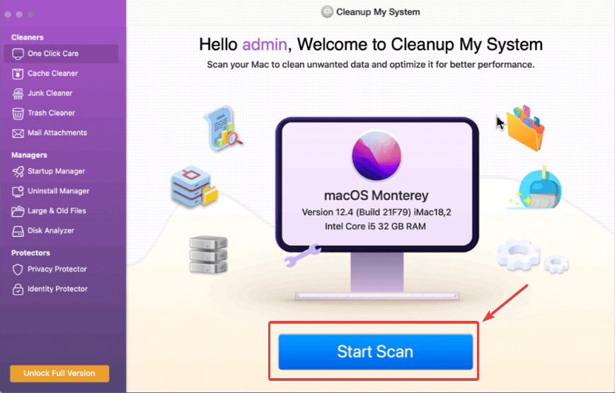 Vaihe 1 –Lataa, asenna ja suorita Cleanup My System Macissasi.