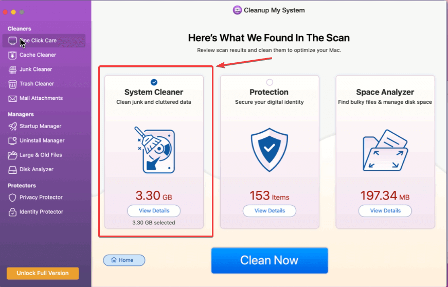 Mutta entä jos voimme säästää itsemme virheiltä yrittäessämme puhdistaa Macin tallennustilaa? Mietitkö miten? Voit käyttää tehokasta työkalua, kuten Cleanup My System.