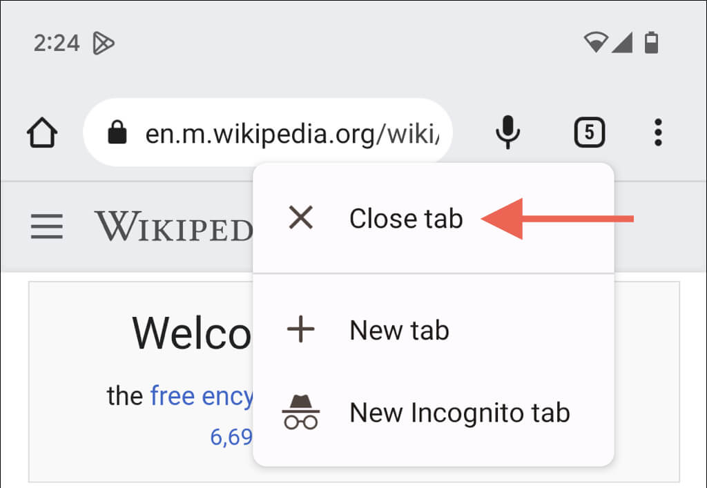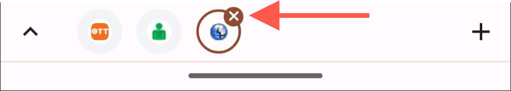 Tämä menetelmä ei toimi joillakin selaimilla. Esimerkiksi välilehden ilmaisimen pitkä painallus Samsung Internet Browserissa avaa uuden välilehden. Siinä tapauksessa sulje välilehti välilehden vaihtajalla.