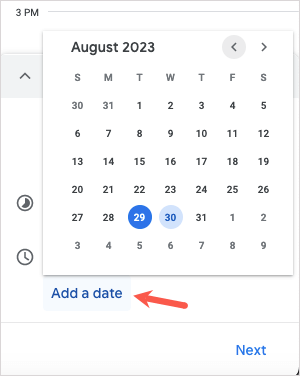 - Jos haluat lisätä saatavuuden toiselle päivälle ja kellonajalle, valitseLisää päivämäärä.
