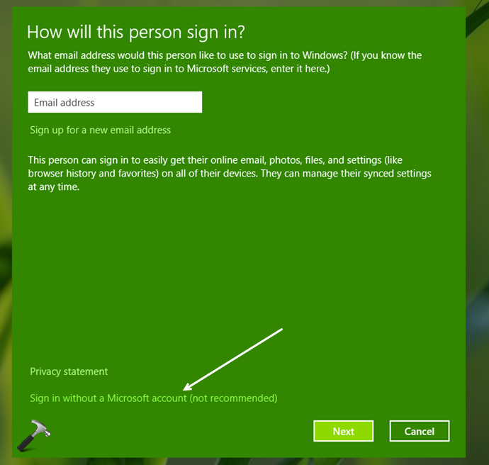 3.Napsauta seuraavaksiKirjaudu sisään ilman Microsoft -tiliä (ei suositella).
