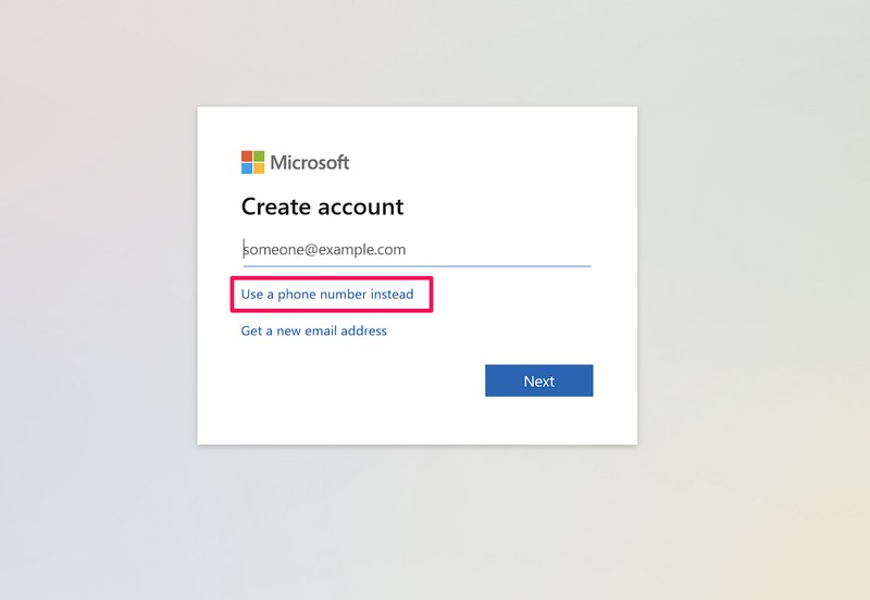 5.Voit myös käyttääKäytä sen sijaan puhelinnumeroa-painiketta luodaksesi Microsoft-tilisi puhelinnumerollasi.