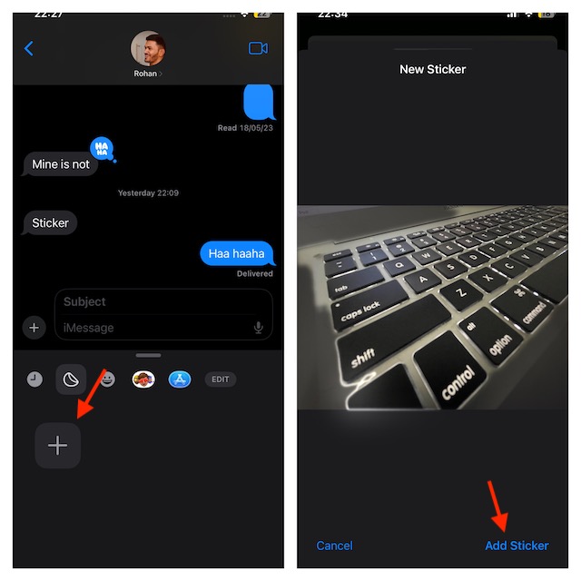 1.Käynnistä iPhonen viestit -sovellus -> Avaa chat -> Napauta “+” -painiketta ja valitse tarrat.