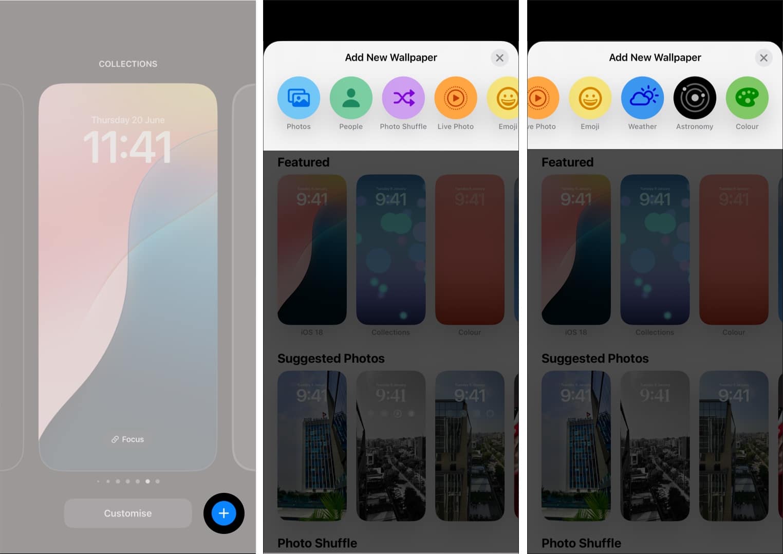 Halutun taustakuvan valitseminen on ensimmäinen askel lukonäytön mukauttamisessa iPhonessa. Apple tarjoaa sinulle useita tapettityylejä, joista valita: