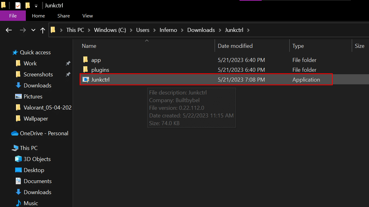 - KaksoisnapsautaJunkctrl.exetiedostot sovelluksen käynnistämiseksi.