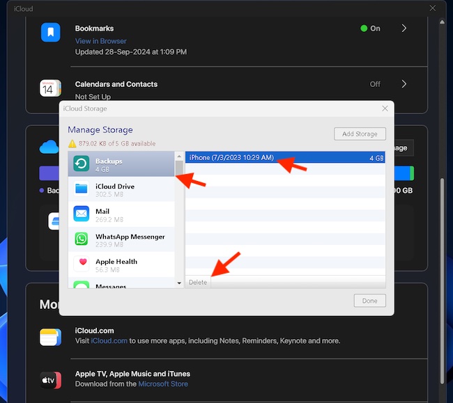 Poista hyödytön iPloud iPhone -varmuuskopiot Windows 11: stä