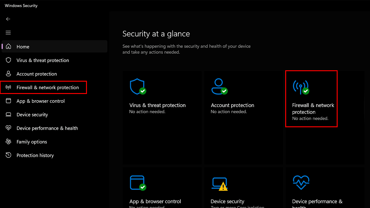 - AvataWindows Security> NapsautaPalomuuri- ja verkkosuojaus.
