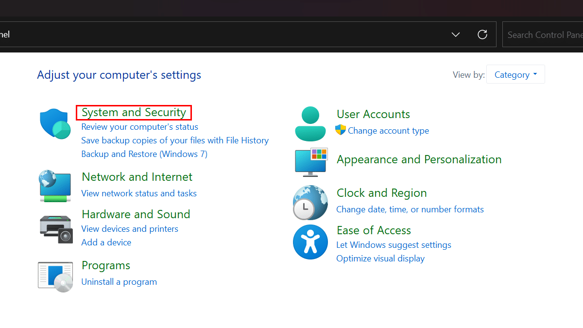 - AvataOhjauspaneeli> NapsautaJärjestelmä ja turvallisuus.