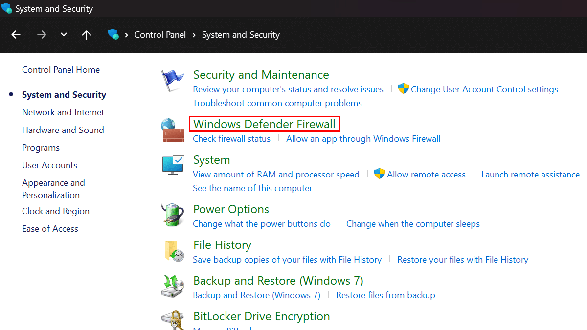 Kuinka poistaa sisäänrakennettu palomuuri käytöstä ohjauspaneelista