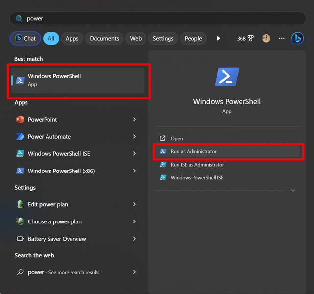 1.KäynnistääPowershelltyökalujärjestelmänvalvojanaWindows 11 -tietokoneellasi tai kannettavalla tietokoneellasi.