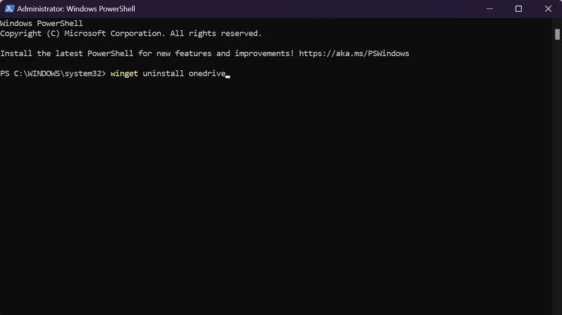 4.Voit sittenPoistu PowerShell -ohjelmastaJa voit olla varma, että OneDrive ei peitä sinua edelleen Windows 11 -tietokoneellasi tai kannettavalla tietokoneellasi.