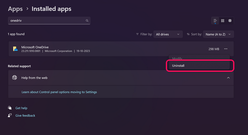 6.Seuraa nyt näytön ohjeita OneDrive-sovelluksen poistamiseksi Windows 11 -tietokoneen tai kannettavan tietokoneen.