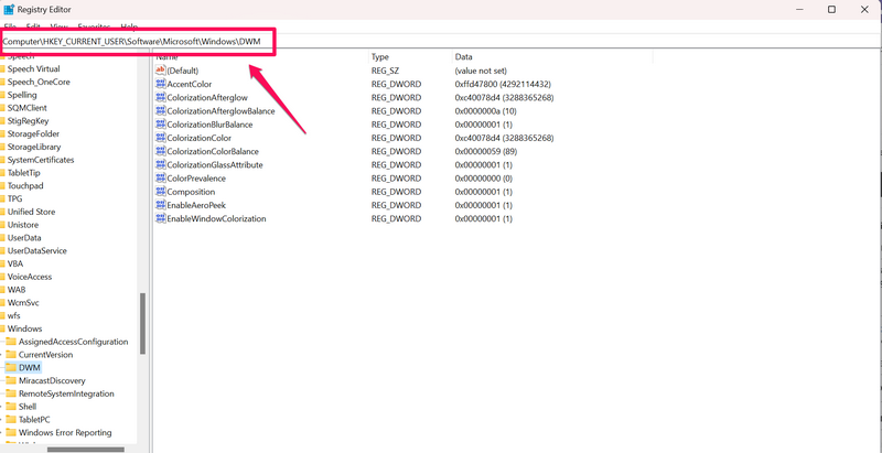 HKEY_CURRENT_USER > Software > Microsoft > Windows > DWM