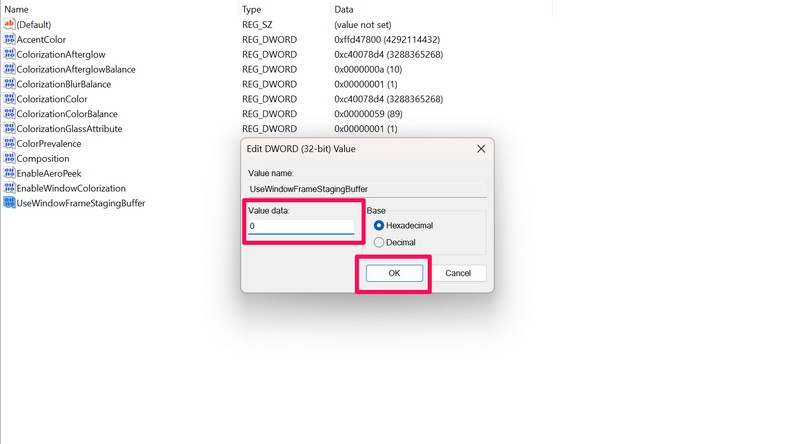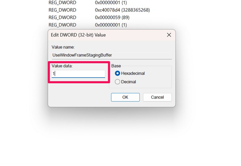 Jos haluat kuitenkin palauttaa muutoksen ja ottaa pyöristetyt kulmat tietokoneen tai kannettavan tietokoneen Windows 11: ssä, voit yksinkertaisesti noudattaa yllä olevia vaiheita asettaaksesi arvotiedot Ur.WindowFramestagingBuffer -arvoon, kuten1. Älä unohda käynnistää laitetta uudelleen, jotta muutos tulee voimaan.