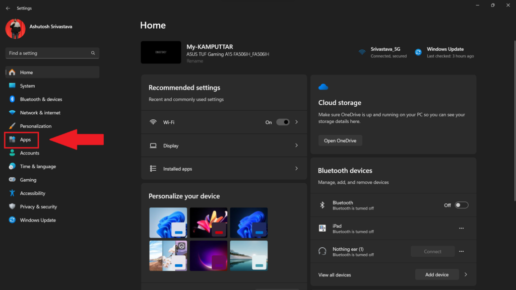 1.PainaVoittaa-näppäintä ja napsautaCog-kuvaketta avataksesiAsetuksetsovellus.