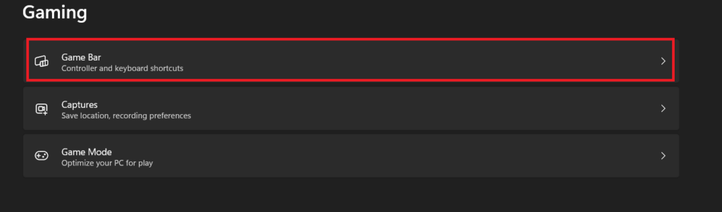 3.VuonnaPelaaminen-osiosta, valitsePelibaarivaihtoehto avata Xbox Game Bar -asetukset.
