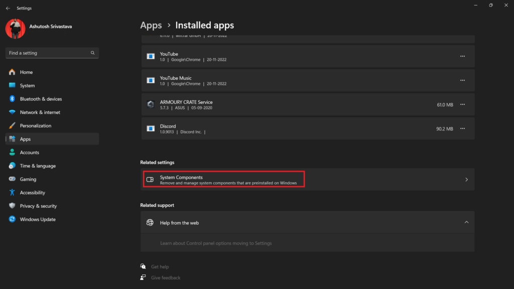 4.Vieritä alas ja napsautaJärjestelmän osatallaAiheeseen liittyvät asetukset-osio.
