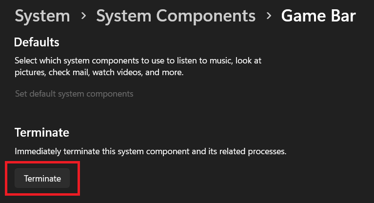 8.Vieritä alas ja napsautaLopeta-painiketta pysäyttääksesi kaikki Xbox-pelipalkin aktiiviset prosessit.