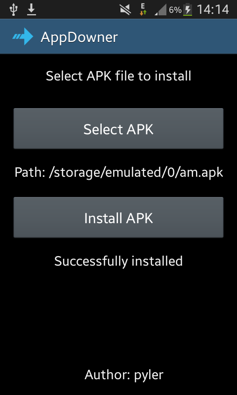 AppDowneria käytetään asentamaan vanhemman version sovellus nykyiseen versioon menettämättä tietoja.Tätä varten meidän on vain avattava sovellus, valittava aiemmin lataamamme .apk ja napsauta Asenna. AppDownerin ovat kehittäneet XDA-Developersin jäsenet. Tämä sovellus suorittaa ADB-komentoa "pm install -r -d file.apk” ilman tietokonetta.alentaa sovellus ilman tietokonetta