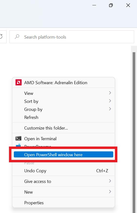 Vaihe 4:Kun oleskellessasi ADB -kansiossa, painaVaihtamisavainjaNapsauta hiiren kakkospainikkeellamissä tahansa kansiossa.
