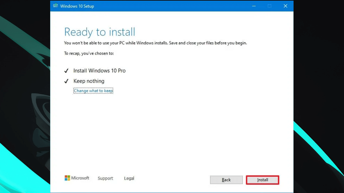 - Valinnainen: Jos et halua menettää tiedostoja tai sovellustasi, jatka vainAsentaapainike.