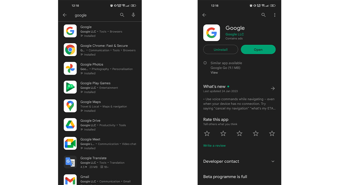 - Avaa Google Play Store> Napauta hakupalkkia ja hae Google> Lataa Google -sovellus.