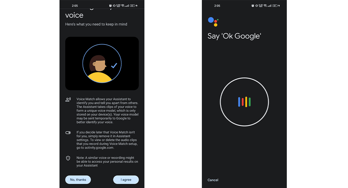 - Pyyhkäise alas ja napsauta Olen samaa mieltä> Sano äänekäs “OK Google” 3 kertaa.