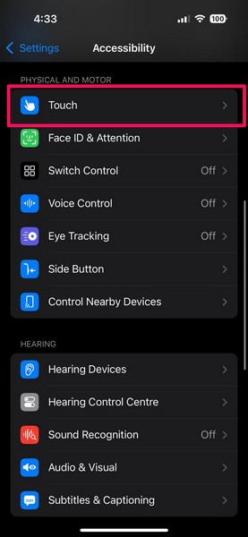 3.Napauta seuraavaksiKoskettaavaihtoehtoFyysinen ja moottoriosa.