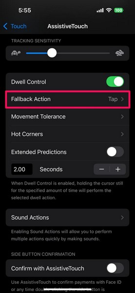 Toisin kuin muut silmäseurannan räätälöintiominaisuudet iOS 18: ssa, Runge Control -ominaisuudessa on joitain lisävaihtoehtoja. Oletusarvoisesti se on asetettu suorittamaan TAP -toiminto, kun käytät silmäseurantaa iPhonessa.