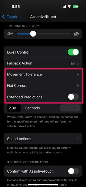 Viimeiseksi voit pitää Dunk Control -vaihtoehdon käytössä tai käytössä. Se kuitenkin ottaa automaattisesti käyttöön, kun asetat ja otat silmäseurannan iOS -laitteessasi. Sen poistaminen käytöstä rajoittaa viivan hallintaa silmäseurannan käytön aikana, mikä estää sinua suorittamasta ennalta valittua toimintaa.