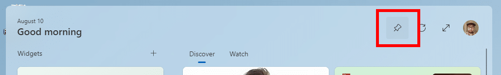 - Kun olet valmis, seuraavan kerran kun avaat widget -levyn, löydät uuden "Nasta”Painike oikeassa yläkulmassa. Kun napsautat”Nasta”Painike, kortti pysyy auki, vaikka vaihdat toiseen sovellukseen.
