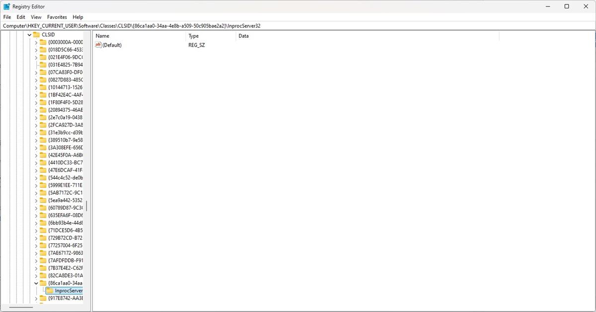5. Valitse äskettäin luotu näppäin ja napsauta hiiren kakkospainikkeella oikeaa ruudua uudelleen ja valitse uusi> -näppäin. Nimeä se uudelleen ”inprocServer32”. (Älä sisällytä lainauksia tällä kertaa). Avaimessa on tietonsa "arvoa ei asetettu". Poista tämä, avaa se ja sulje se nollata sen arvo tyhjiksi (katso alla oleva kuvakaappaus).