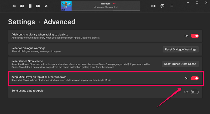 Kuinka pitää Apple Music Mini -soitin kaikkien Windows -Windows 11: n päällä?