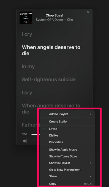 On syytä huomata, että Apple Music Mini -soitin poistaminen tai sulkeminen ei sulje Apple Music -sovellusta Windows 11 -tietokoneellasi tai kannettavalla tietokoneella eikä se lopeta nykyisen kappaleen soittamista. Jos kuitenkin suljet Apple Music -sovelluksen laitteessasi avatulla minisoittimella, se sulkee minisoitin ja lopettaa kappaleiden pelaamisen heti.